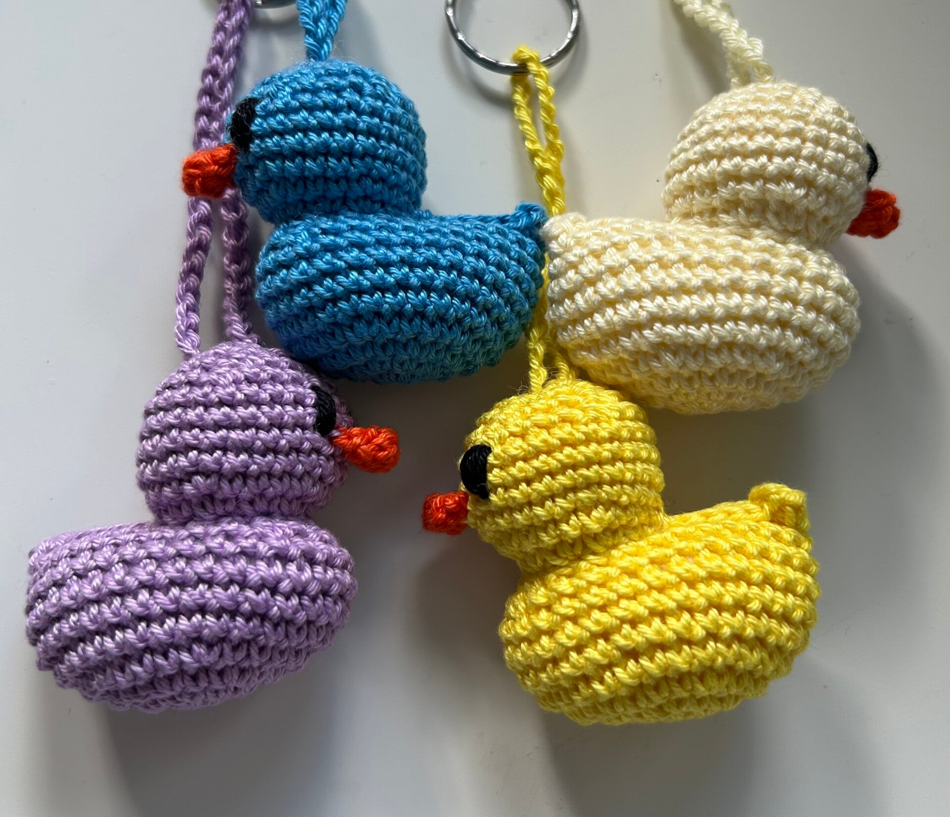 Vrolijk je tas op met een gehaakte eend bag charm.