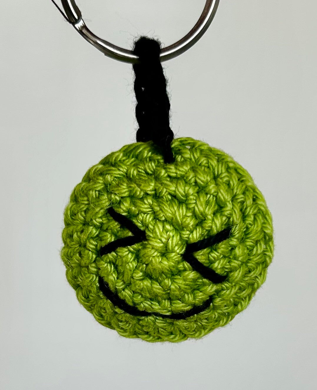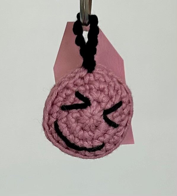 Deze gehaakte smiley kan gebruikt worden als sleutelhanger en als bag charm.