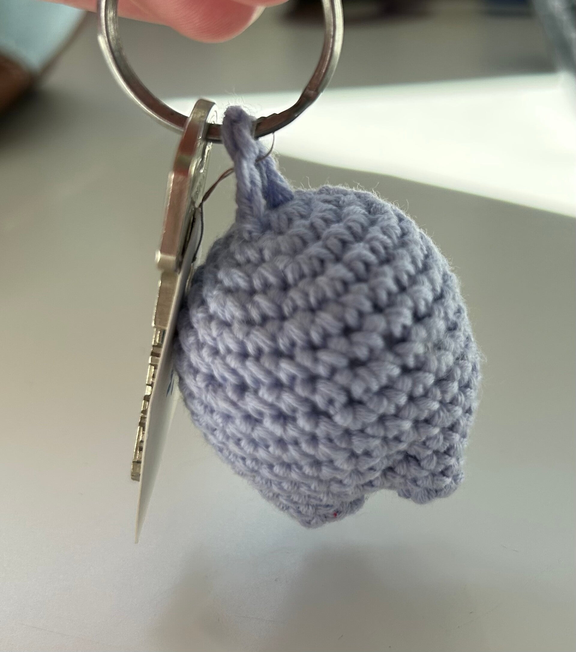 Er zit een stevige sleutelring aan waarmee je hem kan bevestigen.