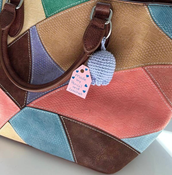 Deze gehaakte tulp kan gebruikt worden als sleutelhanger en als bag charm.